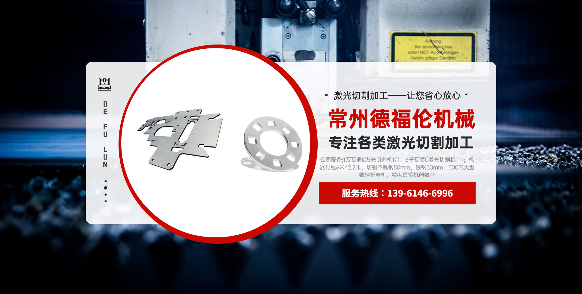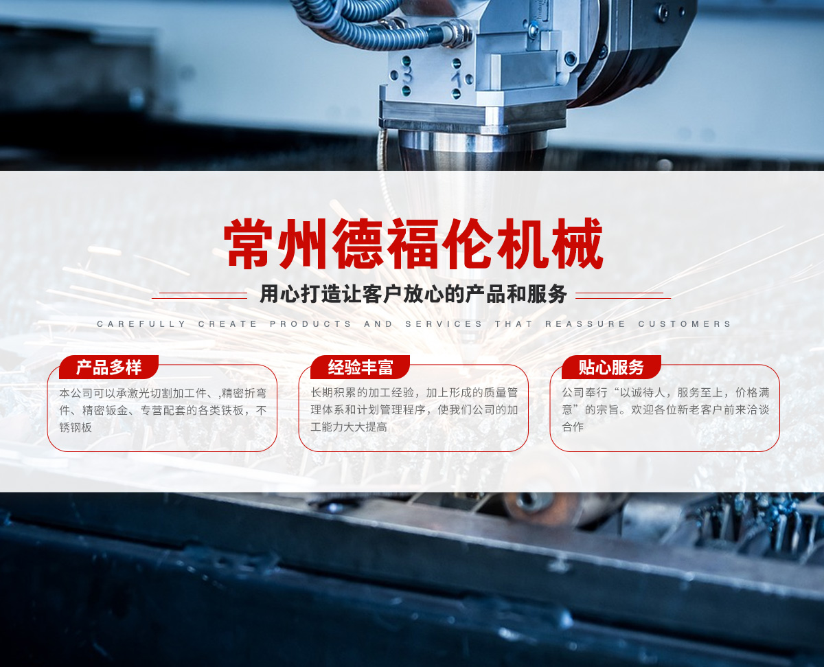 常州德福倫機(jī)械有限公司成立于2014年12月19號(hào),位于江蘇省常州市武進(jìn)區(qū)遙觀鎮(zhèn)建農(nóng)村劍童路56號(hào)西門;公司配備;1萬瓦通K激光切割機(jī)1臺(tái),6千瓦領(lǐng)C激光切割機(jī)1臺(tái);機(jī)器行程6米*2.2米,切割不銹鋼50mm,碳鋼30mm;300噸大型數(shù)控折彎?rùn)C(jī)。精密焊接機(jī)器數(shù)臺(tái)。本公司可以承激光切割加工件、,精密折彎件、精密鈑金、專營(yíng)配套的各類鐵板,不銹鋼板。長(zhǎng)期積累的加工經(jīng)驗(yàn),加上形成的質(zhì)量管理體系和計(jì)劃管理程序,使我們公司的加工能力大大提高,滿足客戶所需,是我們公司的目標(biāo)!公司奉行“以誠(chéng)待人,服務(wù)為上,價(jià)格滿意”的宗旨。歡迎各位領(lǐng)導(dǎo);老總前來洽談合作!